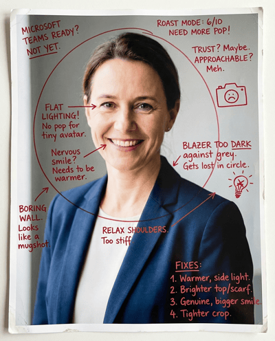 AI-rates your Microsoft Teams profile photo for workplace trust, clarity in tiny avatars, and “easy to work with” energy. Flags bad lighting, awkward crops, and distracting backgrounds—then gives a fast retake plan.