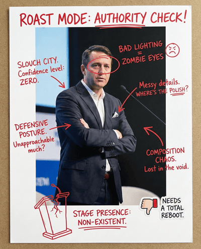 Rate your stage photo for authority and leadership presence. Checks posture, gestures, facial tension, light, and framing—so your bio photo looks confident, composed, and credible.