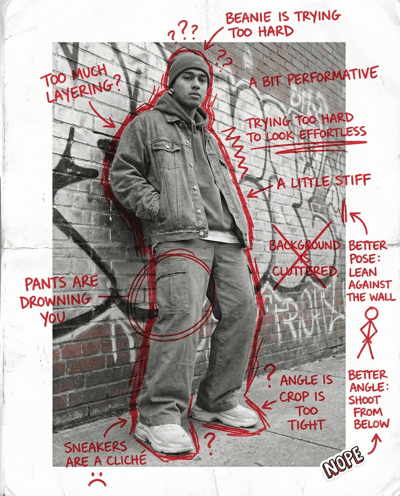 Make your street-style photo hit instantly. Checks outfit silhouette, pose, camera angle, and background lines—then gives one stronger pose and framing fix for cleaner impact.