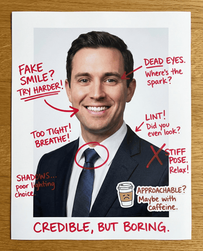 A strong LinkedIn headshot should read “competent and trustworthy” in under one second. This tool flags anything that hurts credibility and gives a simple retake checklist.
